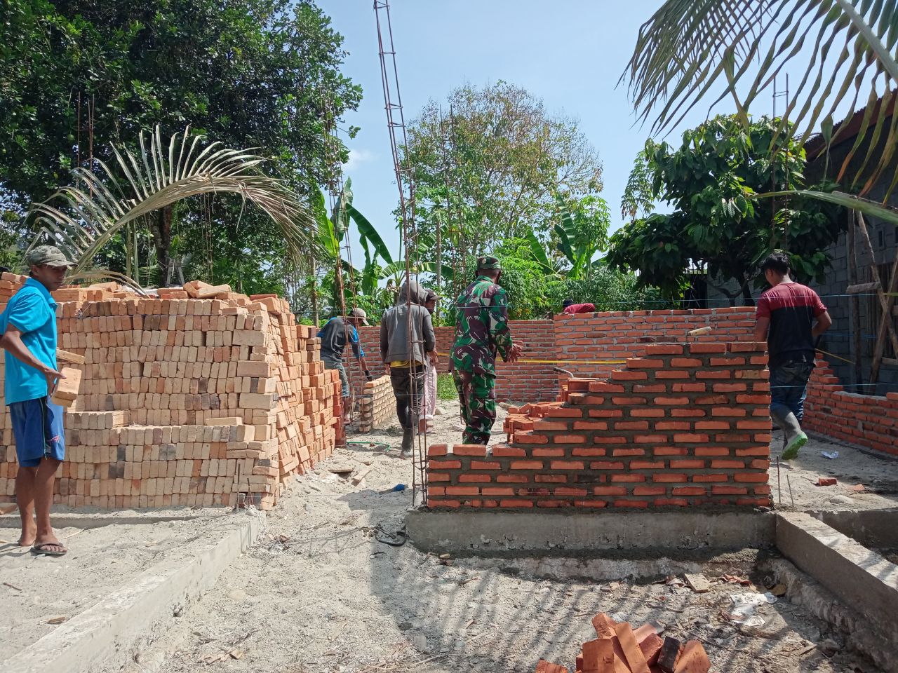 Meskipun di tengah Pandemi Covid -19, Babinsa tidak henti-hentinya melakukan kegiatan kemanusiaan di desa binaan,seperti saat ini membantu warga yang sedang mendirikan rumah,Lanjut Babinsa