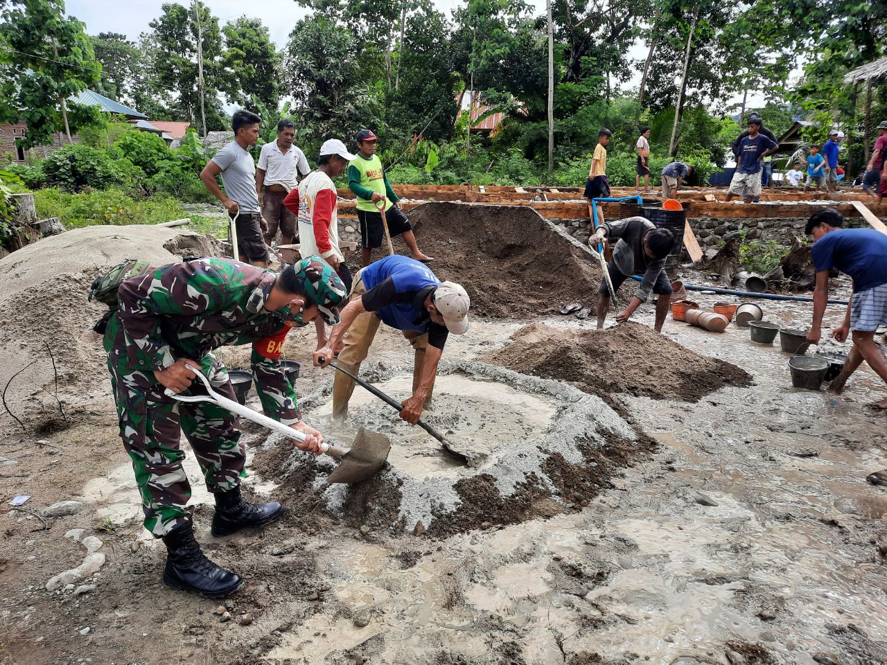 Selaku Babinsa ia merasa terpanggil untuk membantu masyarakat yang membutuhkan bantuan, seperti halnya ikut bergotong royong membantu warga binaan yang sedang melaksanakan pembangunan pondasi rumah.