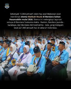MAKASSAR,Lintera News | Sebanyak 15.804 jemaah calon haji asal Makassar akan menikmati kemudahan skema Makkah Route di Bandara Sultan Hasanuddin mulai 2026. Dengan proses pre-clearance keimigrasian langsung oleh petugas Imigrasi Arab Saudi, jemaah tidak perlu lagi menjalani pemeriksaan paspor dan visa saat tiba di Tanah Suci.