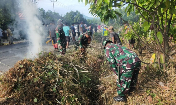 Warga dan personel Koramil serta Senkom saling bergotong-royong membersihkan area tersebut, dengan memotong rerumputan sepanjang jalan poros Walenrang – Lamasi.