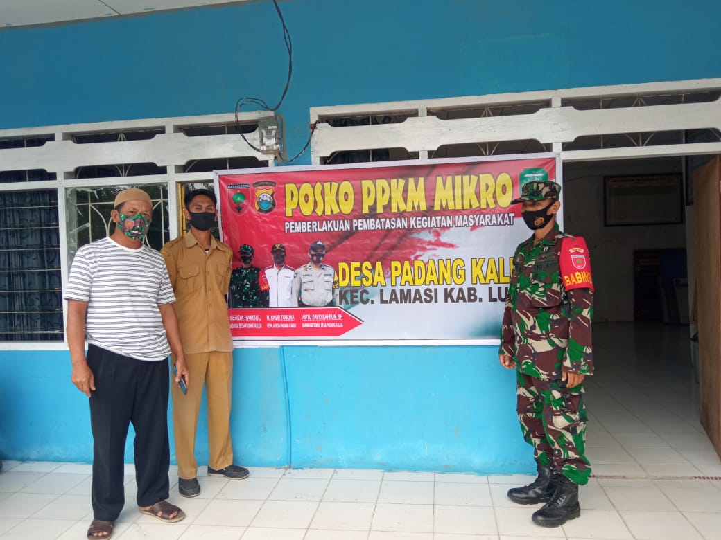 Luwu, Lintera News – Kunjungi Posko PPKM Mikro Anggota Koramil 07 Walenrang Kodim 1403 Sawerigading melaksanakan Komunikasi sosial (Komsos) di Desa Padang Kalua Kecamatan Lamasi Kabupaten Luwu. Rabu 17/03/2021 Pukul 08.45 Wita