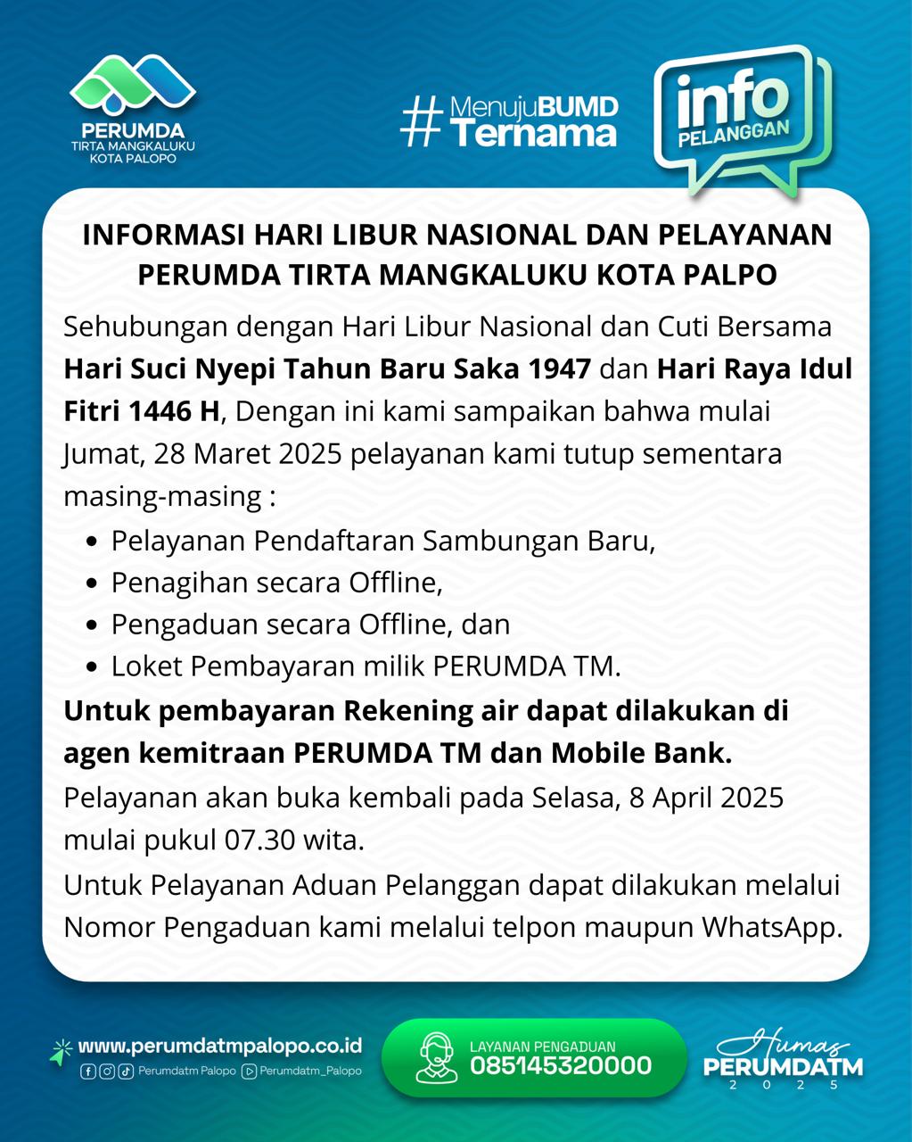 Libur Nasional,Perumda TM Palopo Tutup,Pembayaran Rekening Air Bisa Lewat Agen Kemitraan