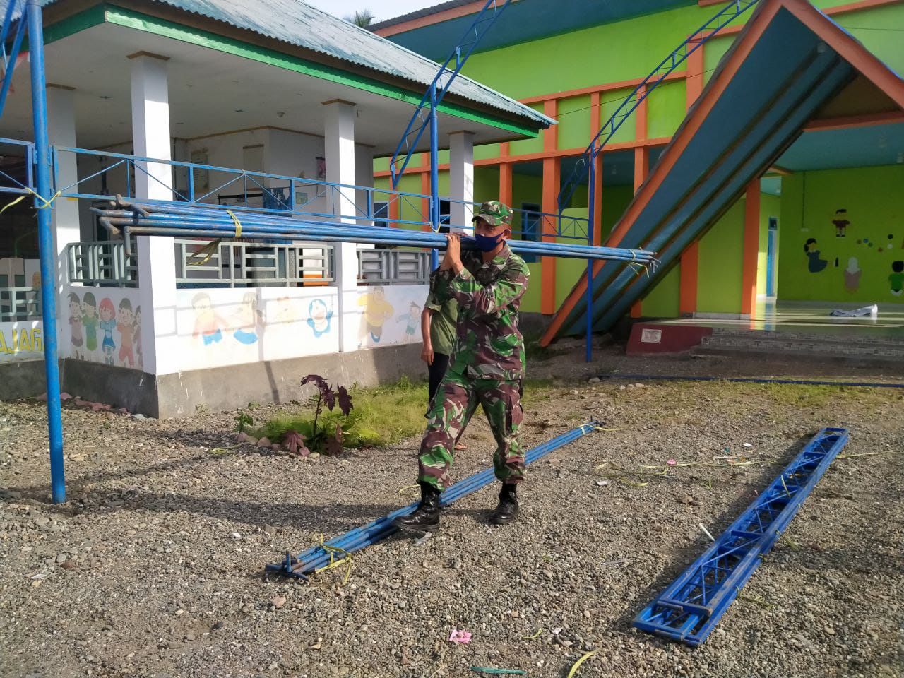 Luwu,Lintera News — Babinsa Koramil 1403-04/padang sappa,Serda Yusak Pingak,peduli terhadap warga binaan tanpa ragu-ragu langsung bergabung bersama warga bergotong royong membongkar tenda,bertempat didusun Tetewaka.Desa Paccerakang.Kecamatan Ponsel.Kabupaten Luwu.Rabu 10 Februari 2021