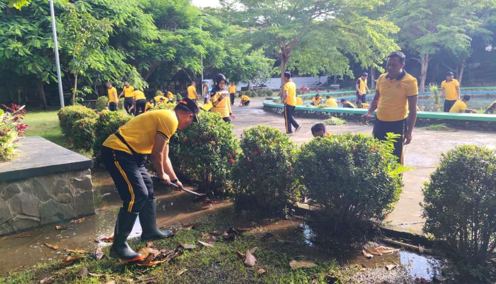 JENEPONTO.Linteranews | Dalam rangka menciptakan lingkungan yang asri dan nyaman, jajaran Polres Jeneponto secara serentak melaksanakan kegiatan pembersihan atau kurvei di sejumlah titik wilayah hukumnya pada Jumat (6/2/2026). Kegiatan yang dipusatkan di Taman Turatea ini turut melibatkan seluruh personel Polres Jeneponto.