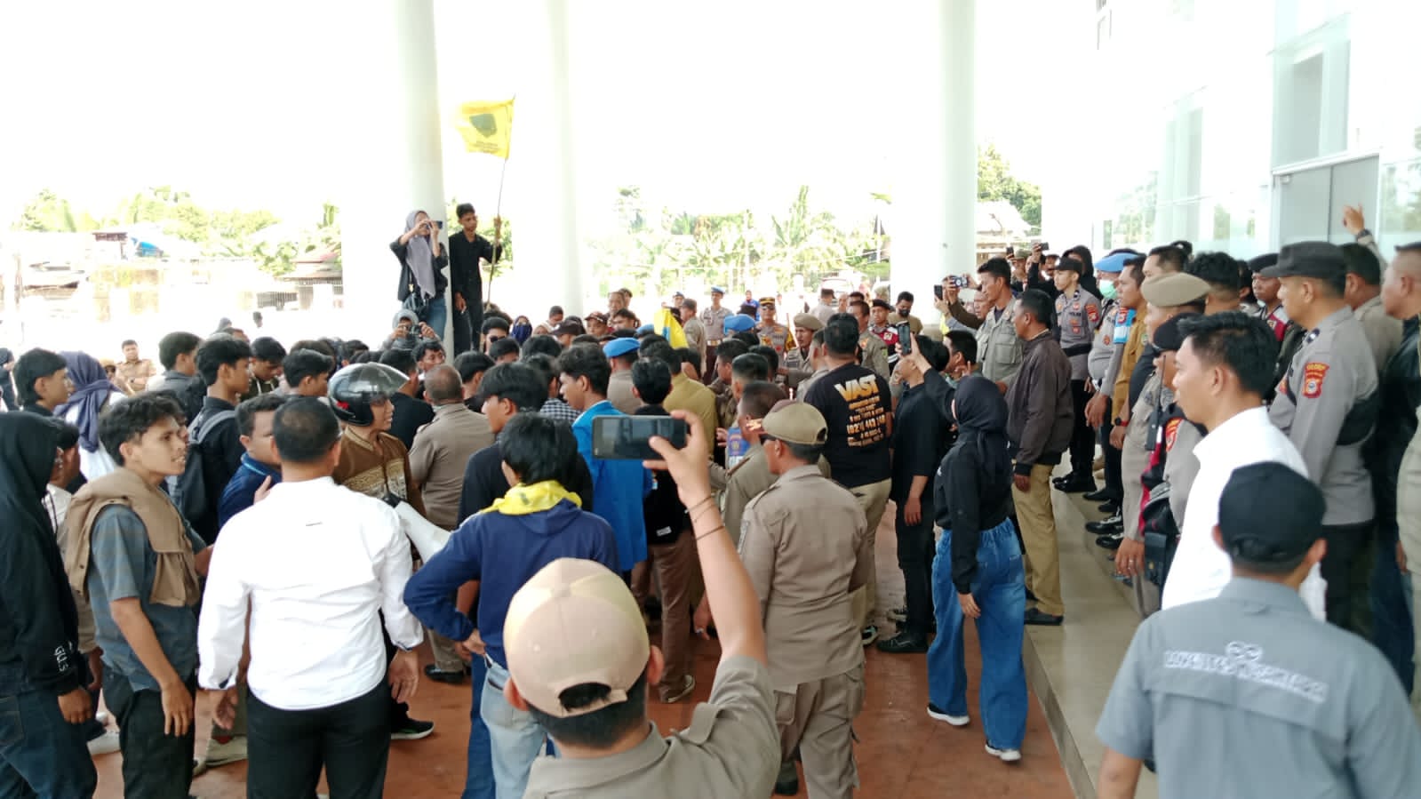Kericuhan pun tak terhindarkan. Terjadi aksi saling dorong antara mahasiswa dan aparat keamanan yang berjaga. Situasi sempat memanas di halaman gedung dewan sebelum akhirnya aparat berhasil mengendalikan keadaan.