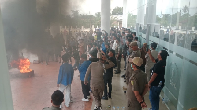 Namun, aksi yang awalnya berlangsung damai berubah menjadi ricuh setelah massa merasa tidak mendapatkan respons yang layak dari Ketua DPRD Kota Palopo.