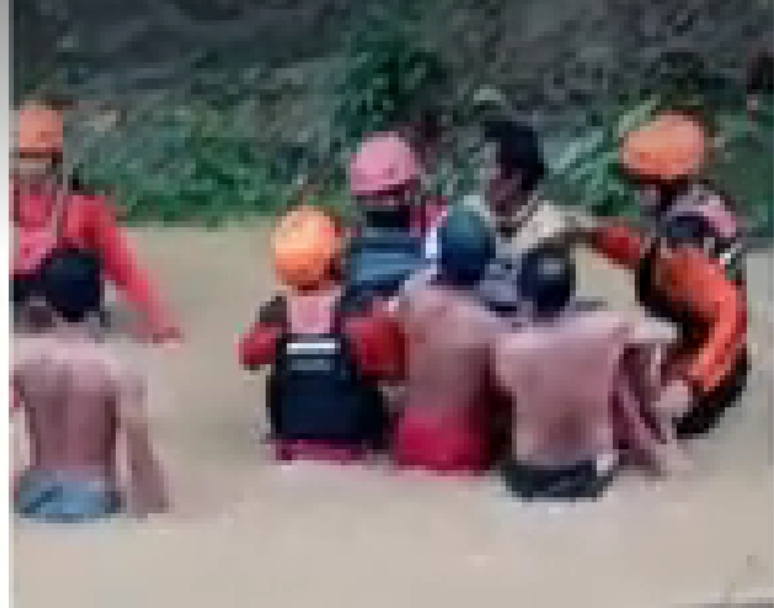Keruh dan Derasnya Air Sungai membuat Tim Gabungan mengalami sedikit kesulitan,namun tidak membuat keputus asaan,sehingga didalam pencariannya Tim kemudian telah menemukan 1 orang anak yang sudah meninggal dunia